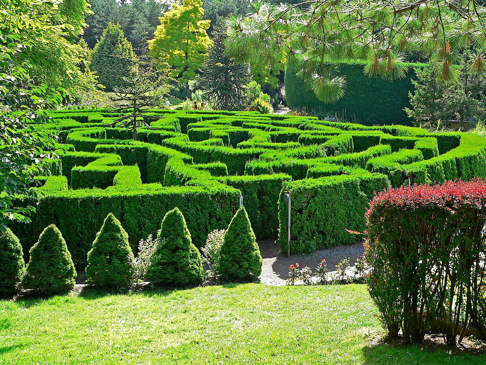 Another popular attraction is the green labyrinth, planted with cedars in 1981, a favorite spot for children. Those who prefer not to navigate the maze can view it from an observation platform.